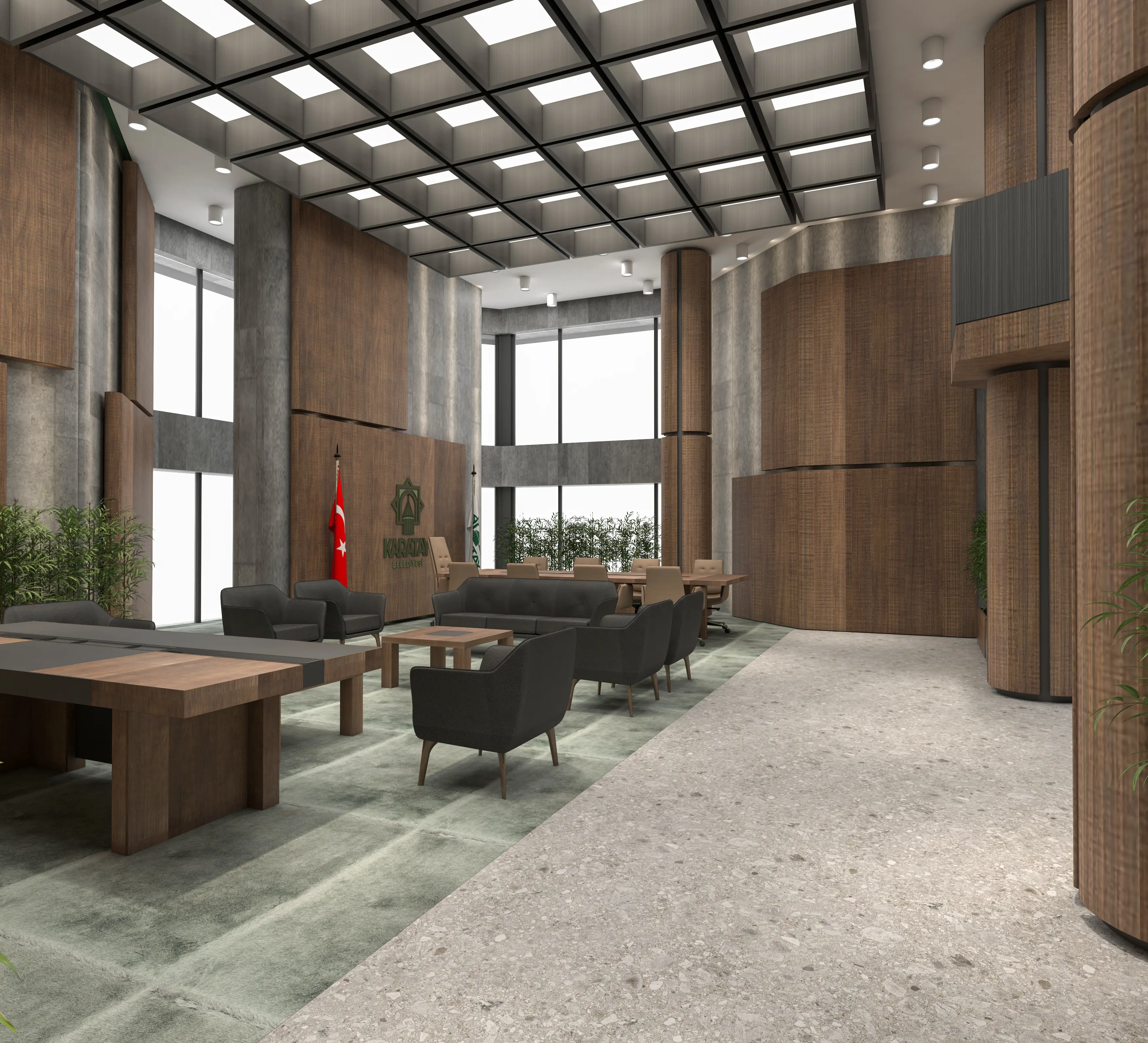 Bu makam odası, yöneticilere prestij ve konforu bir arada sunan şık ve fonksiyonel bir tasarımla öne çıkıyor.
