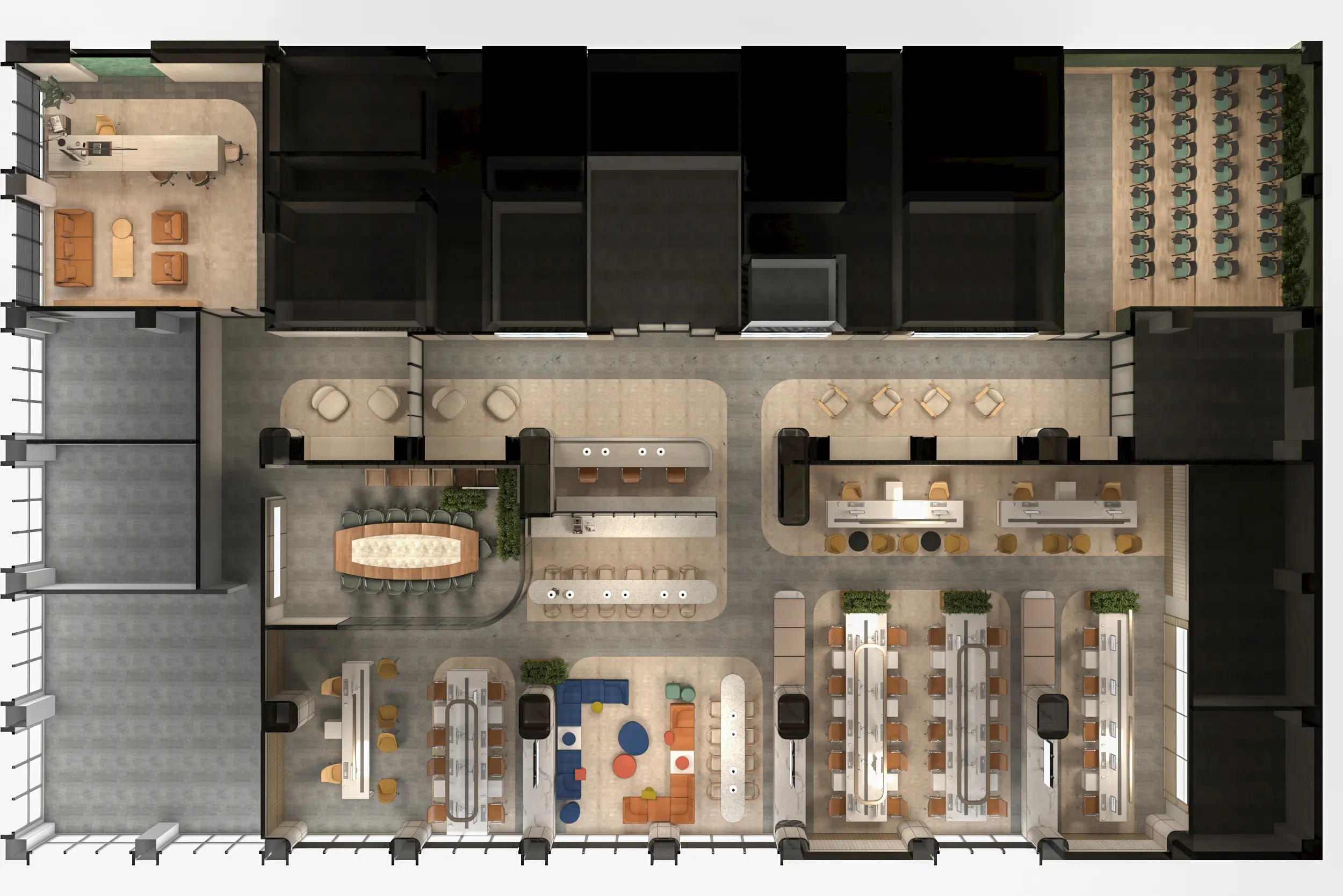 Kurumsal kimliği güçlü, modern ve işlevsel bir çalışma ortamı hedefiyle; Akel İş Merkezi’nde tasarladığımız ofis projemiz modern iş dünyasının ihtiyaçlarına cevap veren yenilikçi ve fonksiyonel bir iş merkezi olarak tasarlandı.