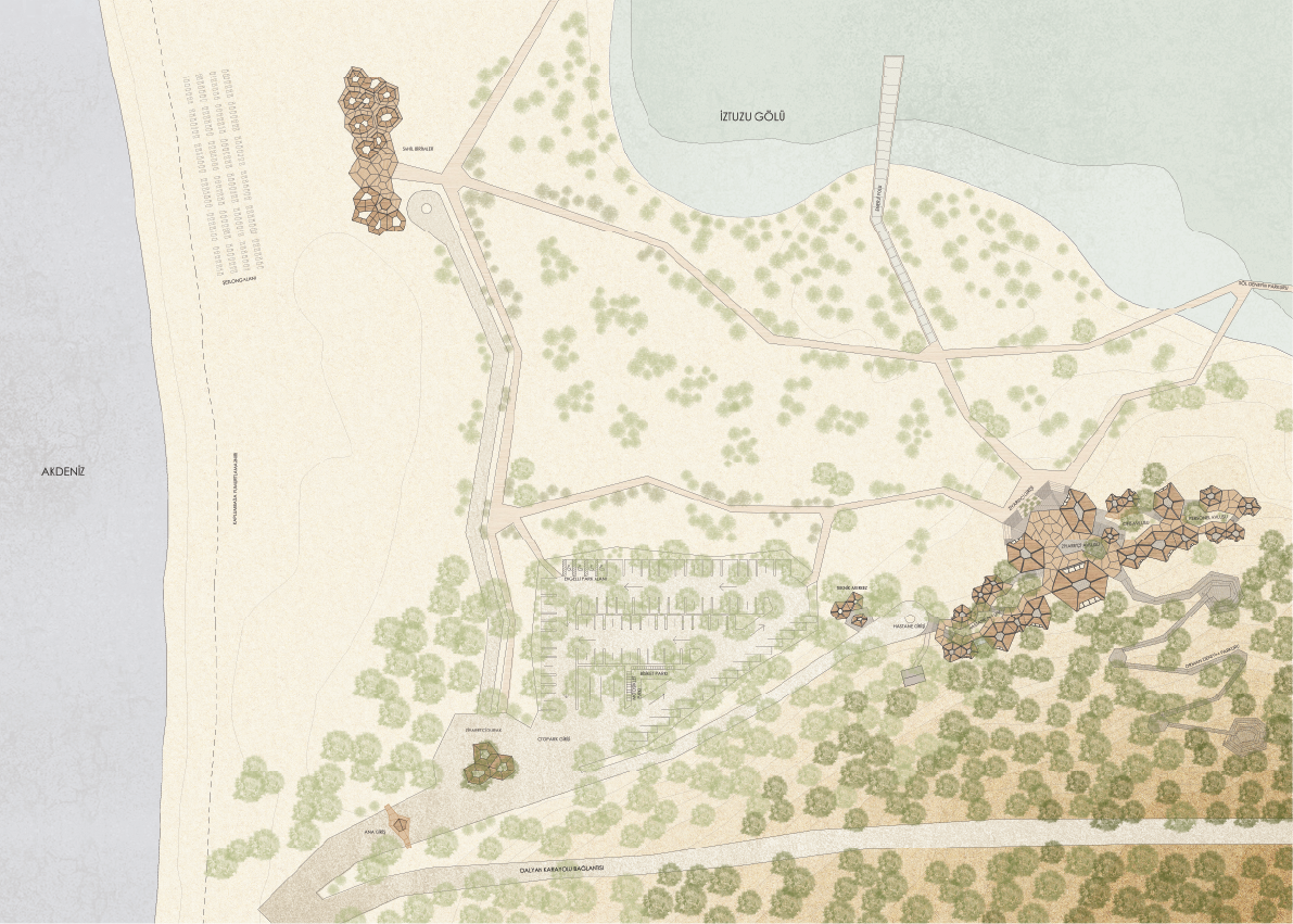 İztuzu Projesi, hem İztuzu Gölü'nü hem de Akdeniz plajını kapsayan geniş bir alan üzerine kurulmuş olup, ziyaretçilere doğanın güzellikleri eşliğinde keyifli vakit geçirme imkanı tanıyor. Kompleks içerisinde yürüyüş parkurları, yüzme alanları ve dinlenme tesisleri yer almakta. Proje, doğaya zarar vermeyen sürdürülebilir mimari çözümlerle tasarlanmış olup, doğanın korunmasına özen gösterilmiştir. Göl ve deniz arasında mükemmel bir denge sağlayan bu tesis, tatilciler ve doğa tutkunları için ideal bir kaçış noktası.