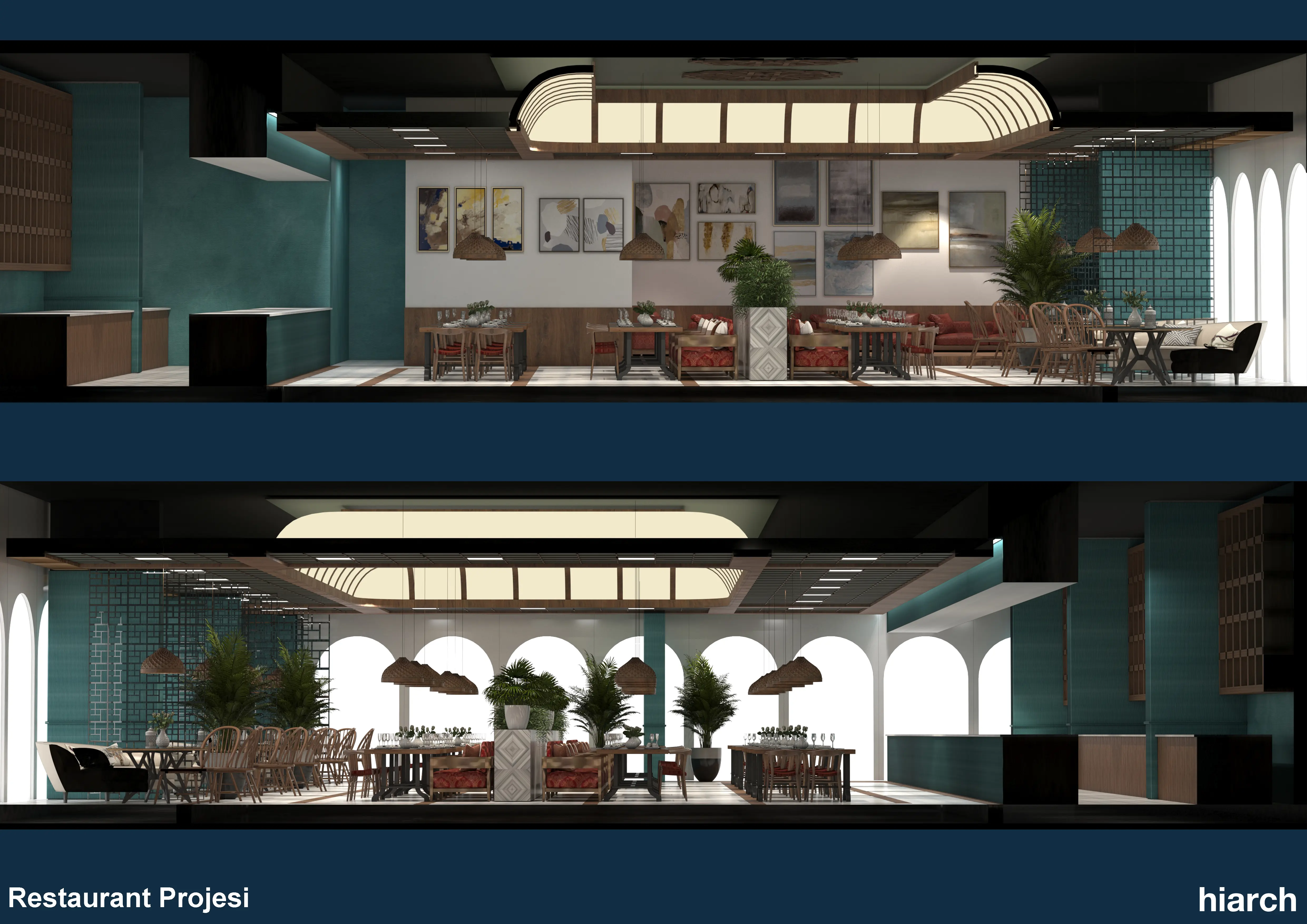 Restoran projesi, şık ve davetkar bir atmosfer oluşturmak için detaylı bir şekilde tasarlanmıştır. İç mekanda kullanılan doğal malzemeler, samimi ve rahat bir ortam yaratırken, geniş oturma alanları ve modern aydınlatma çözümleri misafirlerin konforunu ön planda tutuyor. Fonksiyonel mutfak alanı ve estetik yemek sunum alanları, restoranın hem mutfak ekibi hem de misafirler için benzersiz bir deneyim sunmasını sağlıyor.
